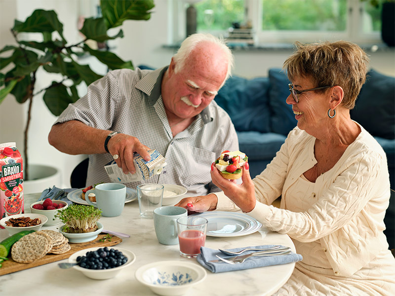 Med inriktning på äldreomsorgen har vi på Skånemejerier tagit fram konceptet ”Naturligt näringsrikt för äldre”. Med enkla mellanmålsrecept baserade på proteinrika mejerivaror som kvarg, cottage cheese och svensk hårdost vill vi underlätta för personalen att se till att de äldre får i sig tillräckligt med näring – och recepten har blivit mycket uppskattade.